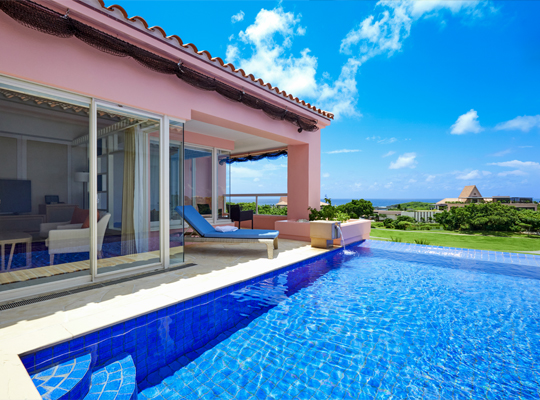 坐落小丘上的獨立別墅,配備私人泳池與日光床,讓您盡情享受宮古島的碧空與星夜。尊享貴賓會所,全天供應精緻小食與飲品,另附高爾夫球車,輕鬆遊覽整個度假村。